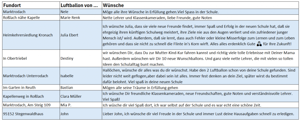 Beim Informationsabend für die neuen 5. Klassen organisierte die Geografie-Fachschaft einen Luftballon-Wettbewerb. Dabei wurden zahlreiche bunte Luftballons an die Kinder verschenkt, die diese gemeinsam steigen ließen. An jedem Ballon war ein QR-Code befestigt. Die Finder der Ballons konnten diesen scannen und darüber Wünsche oder Nachrichten übermitteln. So entstand eine kreative Aktion, die nicht nur Spaß machte, sondern auch Menschen über weite Entfernungen miteinander verbindet. (Fis)