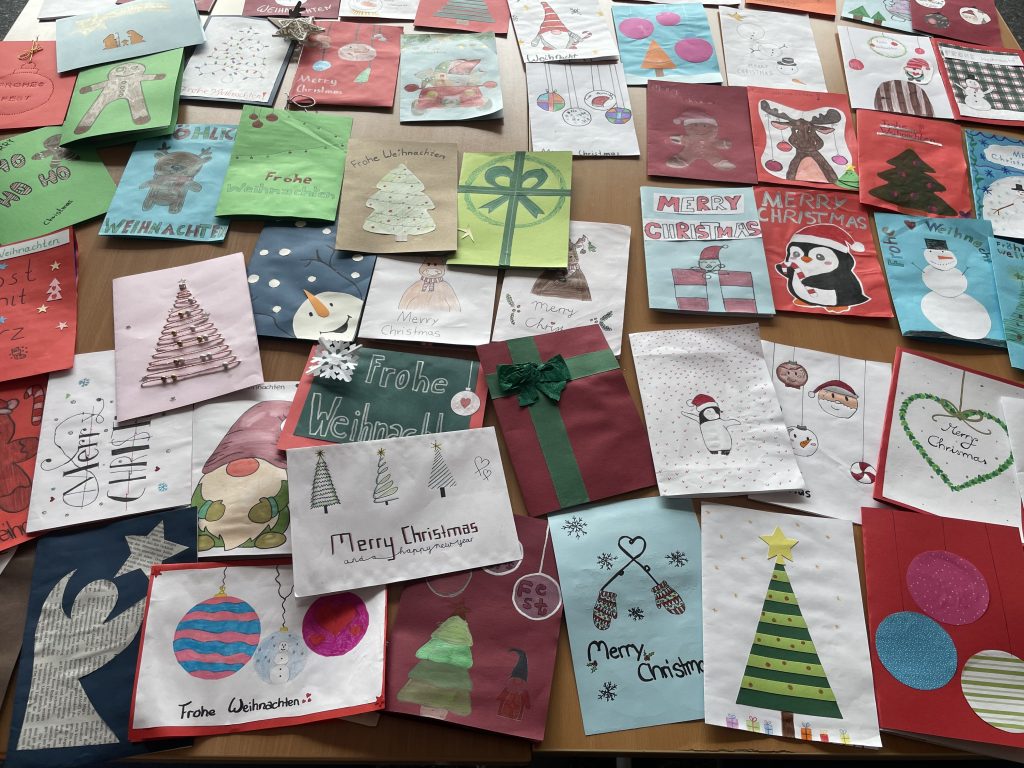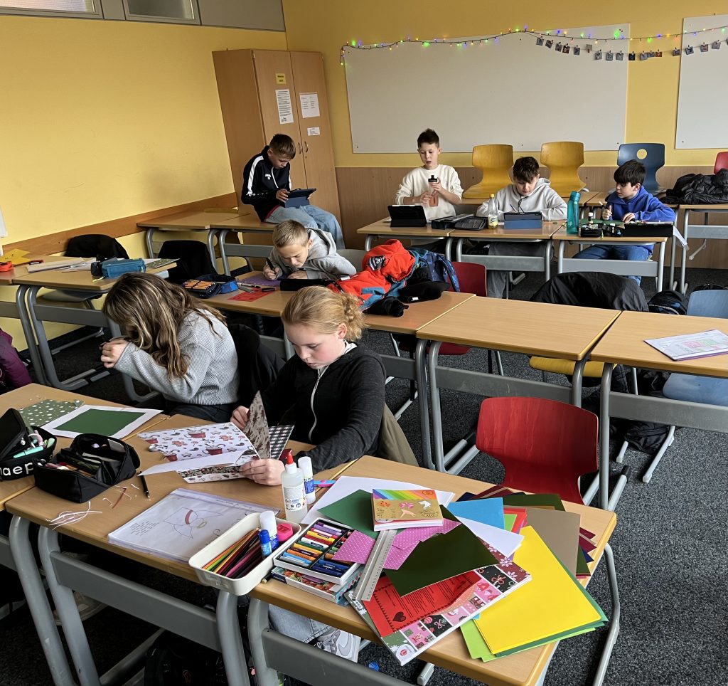 Unter dem Motto „Herzensgrüße zu Weihnachten“ gestalteten die Schülerinnen und Schüler in den Religionsstunden eigenständig liebevolle Weihnachtskarten. Die Klassenzimmer waren dabei erfüllt von Kreativität, Freude, Weihnachtsmusik und dem Duft von Lebkuchen.
