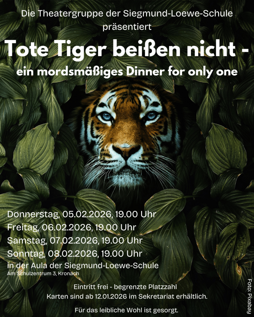 Wohl wissend, dass wir mit unserer Idee eigentlich viel schneller gewesen sind als die Filmschaffenden, nehmen die Schülerinnen und Schüler der Theatergruppe der Siegmund-Loewe-Schule ihr Publikum auf eine Reise in das Jahr 1953 mit. Im Landschloss von Miss Sophie werden sich Sir Toby, Admiral von Schneider, Mr. Pommeroy und Mr. Winterbottom zum 80. Geburtstag ihrer Gastgeberin einfinden. Dass plötzlich eine Schlossführung, ein Mann von der Königlichen Baubehörde, die Polizei, Edgar Wallace und ein neues Hausmädchen sowie eine geheimnisvolle Unbekannte auftauchen, sorgt für allerlei Verwirrung; auch bei den drei tollpatschigen Dieben. Denn Achtung! Niemand in diesem Schloss ist das, was er zu sein vorgibt. Und so nimmt der Abend seinen krimikomödiantischen Verlauf. (Hpm)